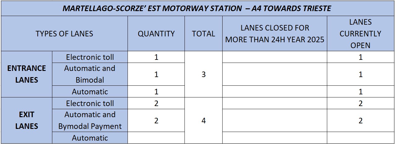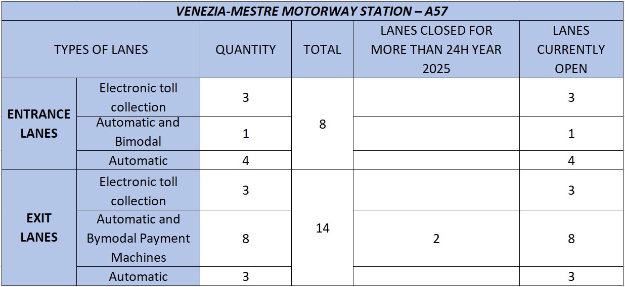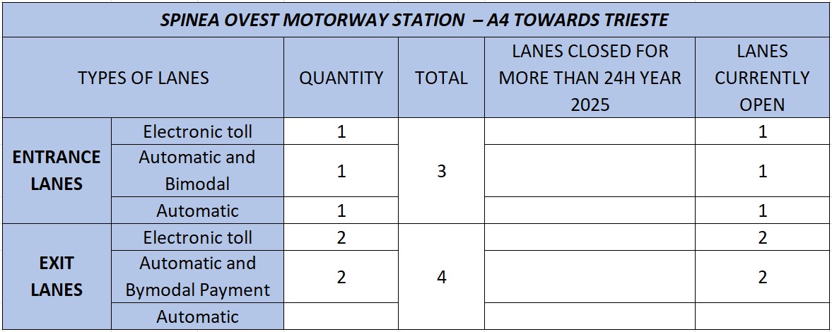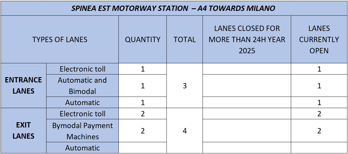- A4: Spinea (Spinea Ovest at km 379+915 and Spinea Est at km 380+239);
