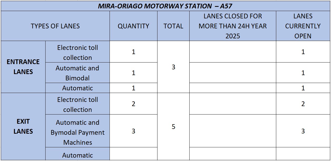 - A57: Mira-Oriago at km 7+550;