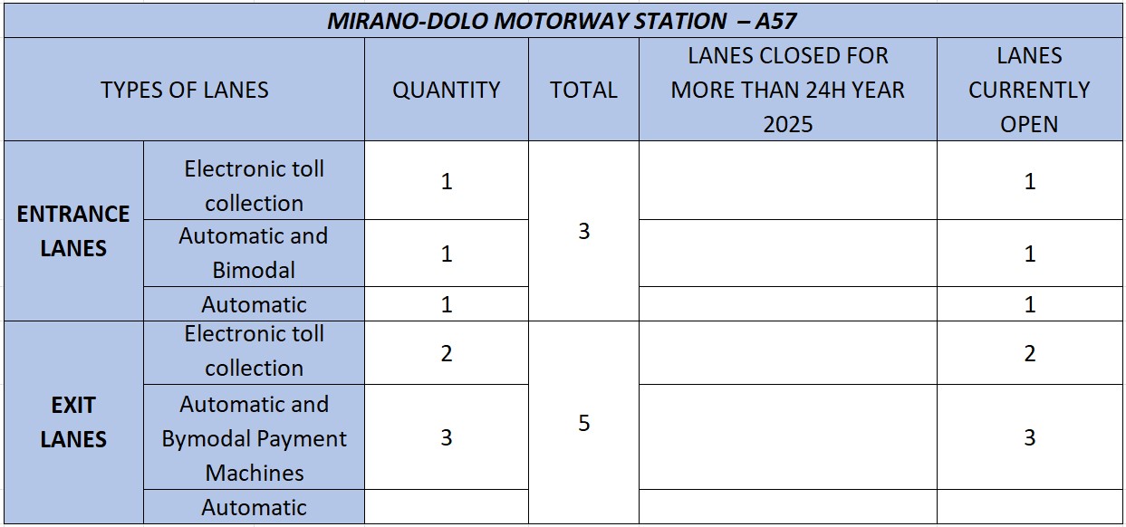 At exit stations users will find Electronic toll collection gates, gates with automatic toll payment with Viacard, Fast-Pay (Bancomat) and credit cards, and gates with automatic payment machines.