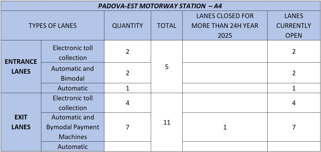 - A4: Padova Est at km 363+724;