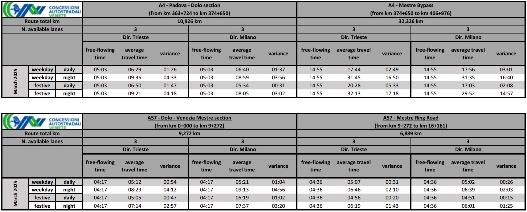 - "variance" [min:sec]="Free-flowing time" - "average travel time"