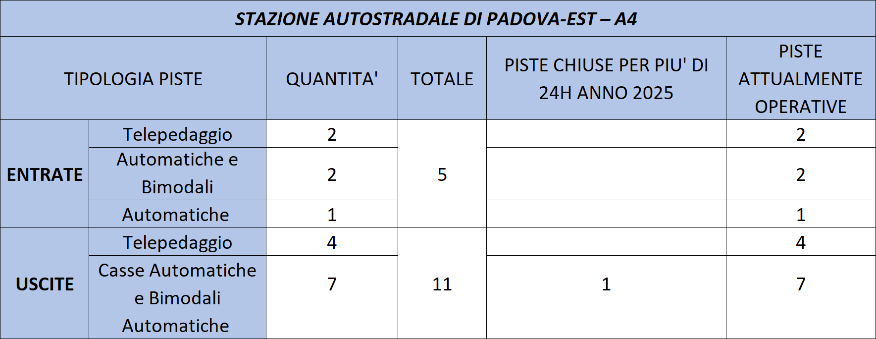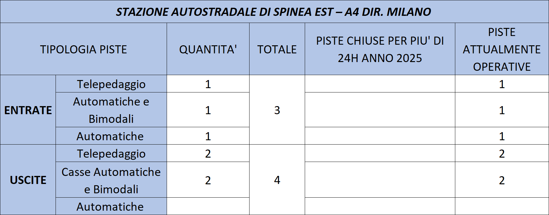 Nelle entrate sono attive porte Telepedaggio e porte con dispositivi per l'emissione automatica del biglietto.