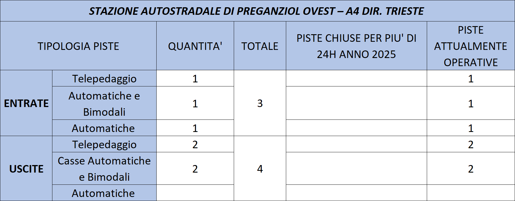 - A4: Preganziol (Preganziol Ovest al km 399+908 e Preganziol Est al km 400+361);